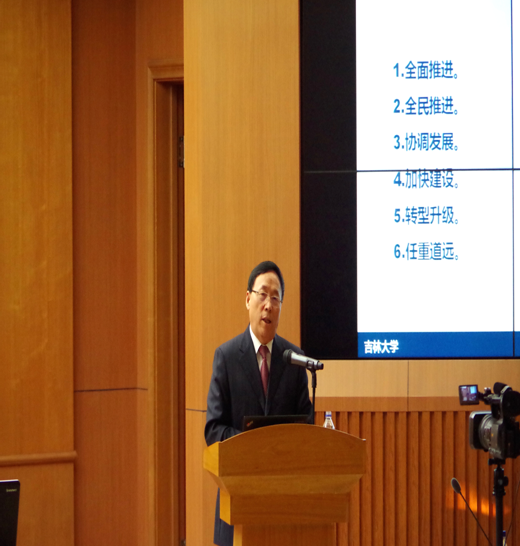 张文显教授首先以“全面推进、全民推进、协调发展、加快建设、转型升级、任重道远”为关键词讲述了中国法治新常态的六大特征。张教授指出:当前我国只是法律大国,而非法律强国。与欧美等国家比,我国法治在实施方面仍不乐观,建设中国法治新常态还需我们共同努力。接着,张教授又论述了中国法治新常态的十大内涵。教授提出应将四个全面协调推进;应实现党的领导、人民民主、依法治国新型统一;应将完备的法律规范体系、高效的法制实施体系、严格的法治监督体系、完善的党内立法相结合;应全面推进科学立法、严格执法、公正司法、全民守法、人才强法等新时期的法治要求。教授还就我国当下国际法相对薄弱、国际法人才相对短缺的现状提出应使国内法治、国际法治、全球法治相得益彰的期盼。张教授睿智的话语、优雅的风度、幽默的口吻获得同学们的阵阵掌声。