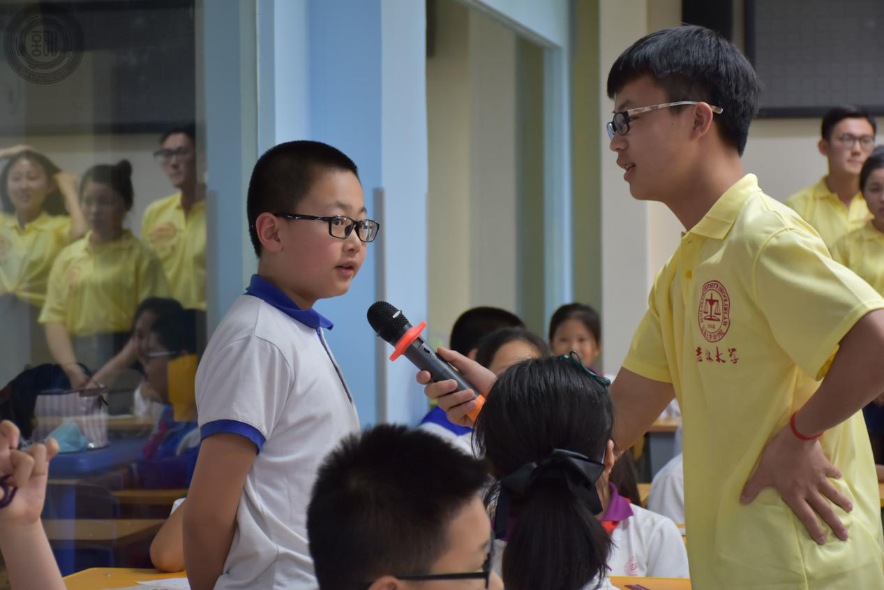 在寓教于乐的欢乐氛围下,普法讲座正式结束。参与讲座的小朋友们似乎还意犹未尽,已经开始期待下一次讲座的开展。最后,法学会的工作人员们和附小的同学们一起合照留念。会后,本次活动的负责人之一,2013级的谌静纬在接受本社采访时表示,本次讲座以权利义务为核心,通过举生活中的例子,让孩子们更直观地理解相关法律常识,是法学会举办的一次满意的普法讲座。