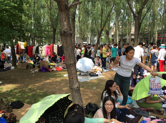 2016年6月18日早上七点三十分左右,已有部分2016届毕业生到达了指定地点,选择好位置,摆放好物品,为即将到来的活动做好了充足的准备。八点左右,陆陆续续有同学们到达活动地点,彼此热切地交流着买卖物品的事宜。随着活动的顺利进展,活动现场已经不再只有公司里的员工,还有很多慕名而来的心怀爱心的社会人士,生意也越来越好,体育场的小路上挤满了前来购买的人,场面甚是热闹。很快就到了中午,校区里的人们越来越多,购买的热情也越发高涨,这些即将毕业的员工们忙起来甚至忘记了去吃午饭,但是能够这些收获对他们来说也是值得的。