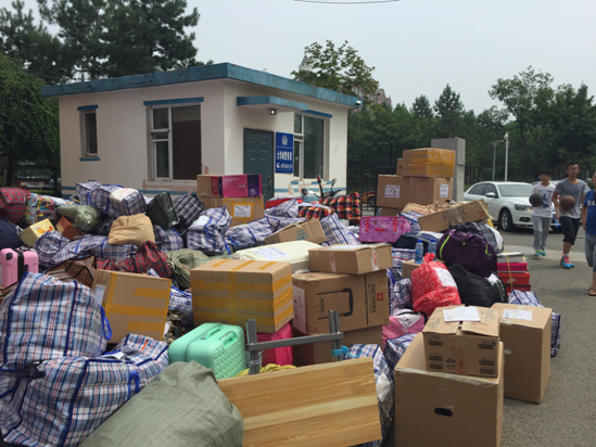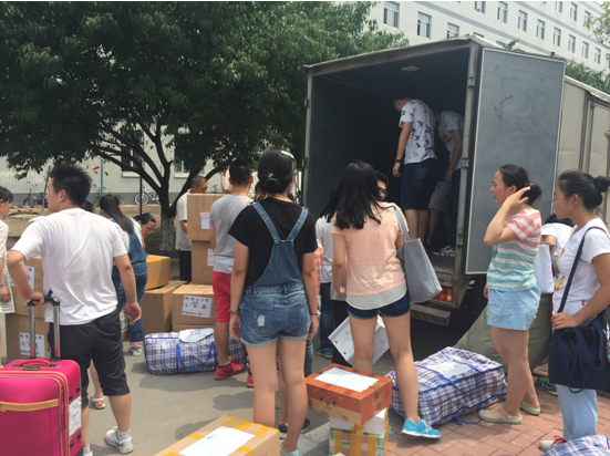 九点三十分左右,搬家公司的货车到达寝室楼下开始装箱,但是由于每车随车来的工人只有两位,装车的速度较慢,而行李又很多,为了加快速度节约时间,不少同学都自觉动起手来,帮着向车里装行李,甚至还有几个女孩子也搭起了手,力气不比男生差多少,巾帼不让须眉!经过大家的齐心协力,很快就装满了三辆货车,向北苑二公寓和经信三公寓出发。在员工会、生管会的工作人员为同学们分发行李的过程中,大家井然有序,不吵不嚷,搬完自己的行李又帮着其他人搬,还有大二大三的师哥前来帮忙,气氛十分温馨。三辆货车往来三回,所有行李在中午十二点左右全部搬完。令人骄傲的是,我们每个班级300-400件行李不等,整个年级近乎4000件行李没有一件丢失或遗落,全部有序、正确地放置到各个寝室,这离不开每一位贡献力量的法律人,最高荣誉伟德国际bevictor1946不仅体现在学术研究上,更体现在集体活动中大家的团结一心,体现在吉大法律人既有智商更有情商,既搞得了学术更扛得起重担的优秀品质。