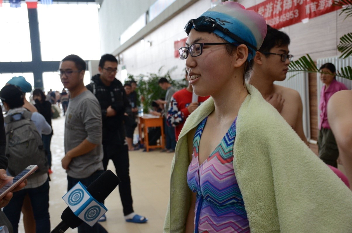 于:嗯……主要是推广游泳这项运动吧,让游泳爱好者能发挥自己的特长,在比赛中获得乐趣,也能锻炼我们组织者的组织能力,还能提高我们吉大游泳协会的影响力。(笑)