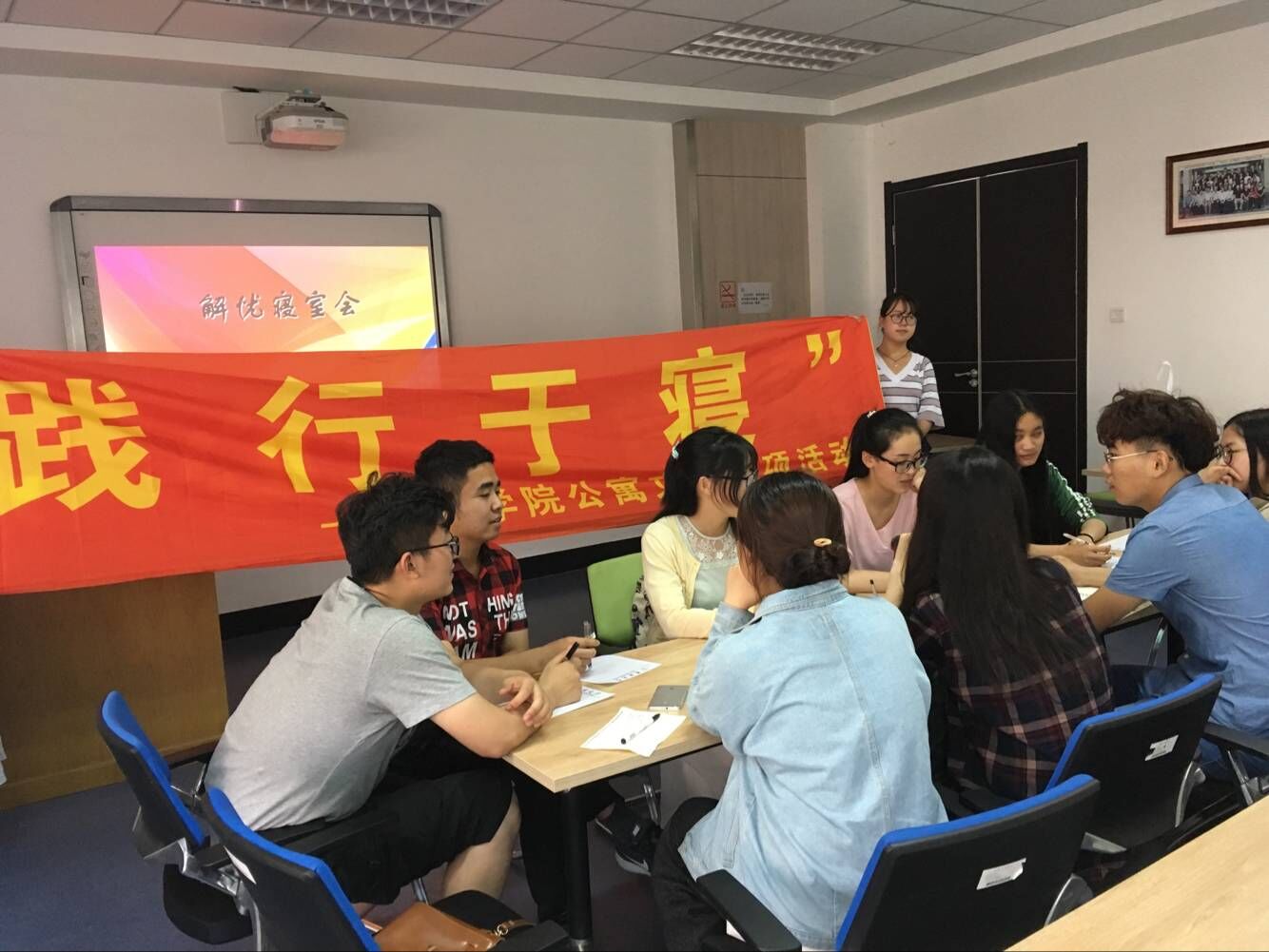 寝室是丰富德育阵地的重要载体,加强寝室建设是任何高校都不容忽视的工作。伟德国际bevictor1946在公司“思政进公寓”的思想的引领下,举办了“解忧寝室会”活动。此活动旨在通过民主会议的方式加强寝室成员对社会主义民主的深刻理解、同时培养同学们的团结、合作精神,增进寝室成员之间的关怀、友爱之情,促进文明建设,构建良好风气,使大家感受到校园生活的温馨与美好。