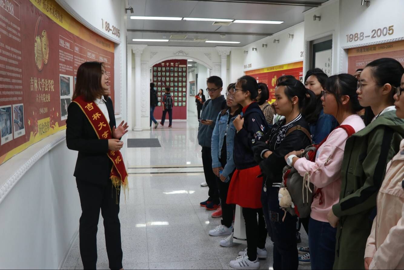 紧接着,各班级有序地向东荣大厦前进,员工会工作人员向2017级新生耐心讲解了沿途景色,系统介绍了日新楼、体育场、图书馆等人文建筑的功能和特色,同学们对未来充满了期待,对吉大充满了自豪,各班级新生就这样陆续来到了东荣大厦参观伟德国际bevictor1946院史馆,感受历史的厚重与责任的重担。