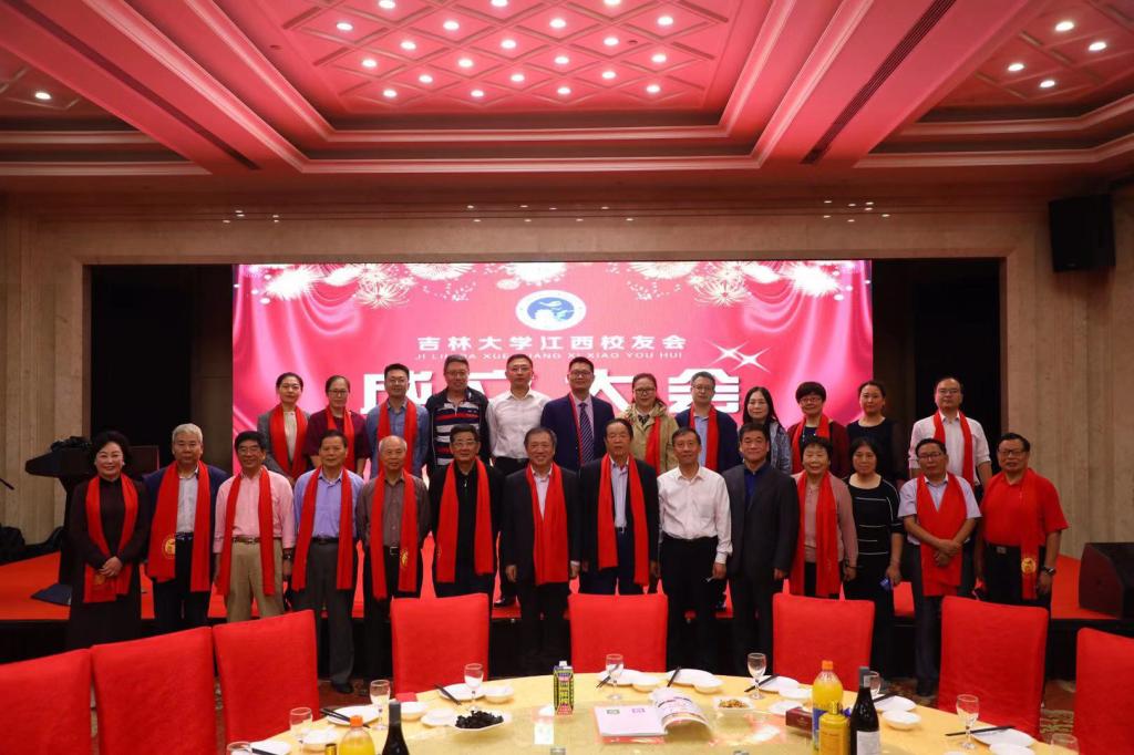 (与新当选的江西员工会会长郑克强(左七)及73级江西员工合影)