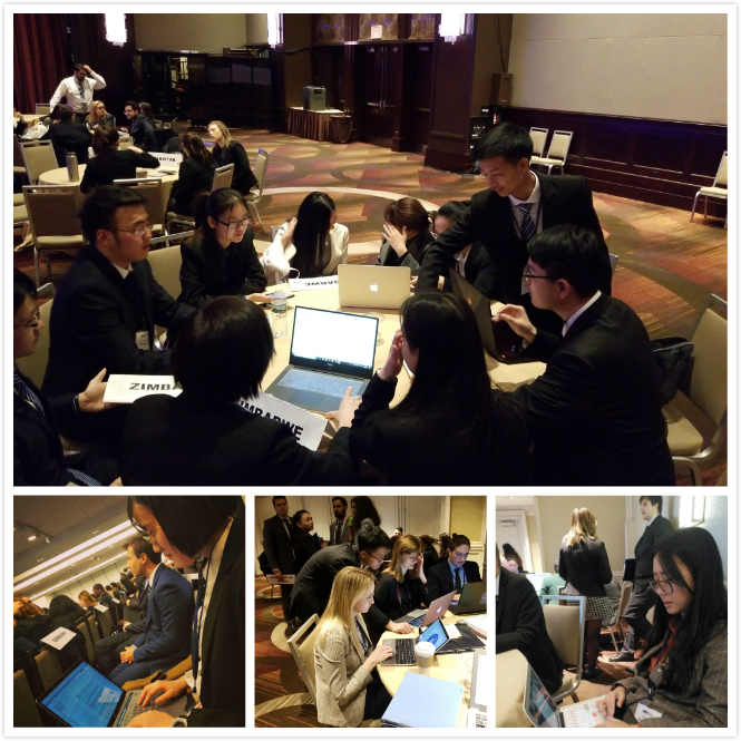 公司代表团由2017级的20名本科生组成,由辅导员骆旷达老师带队参会,根据大会组委会指定,代表津巴布韦与其他各国代表在A组的联合国经济及社会理事会(ECOSOC)、联合国环境大会(UNEA)和国际移民组织(IOM)等十个委员会就指定议题进行探讨。会议期间,同学们立足代表国立场,就人权保护、环境变化、经济社会发展、反恐、教育、防止化学武器扩散等国际热点问题与其他国家代表进行了激烈的辩论与谈判。在前期充分调研的基础上,公司代表们积极提出议案,共同推动会议进程,最终成功参与了10份决议的起草和签署,多项条款被会议采纳并被正式写入决议。