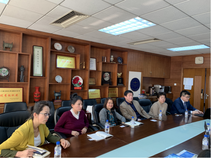 国际法学田洪鋆教授向格雷戈里鲍尔教授(Dr. Gregory F Ball)介绍自己的研究方向,表示在国际关系日益密切、一带一路的背景下,很希望能够与马里兰大学进行深入合作交流。李梦学教授(Dr. Mengxue Li)表示会在不久开拓国际关系方面的学术研究,随后双方针对开设法律学术写作训练课程进行交流。