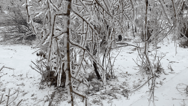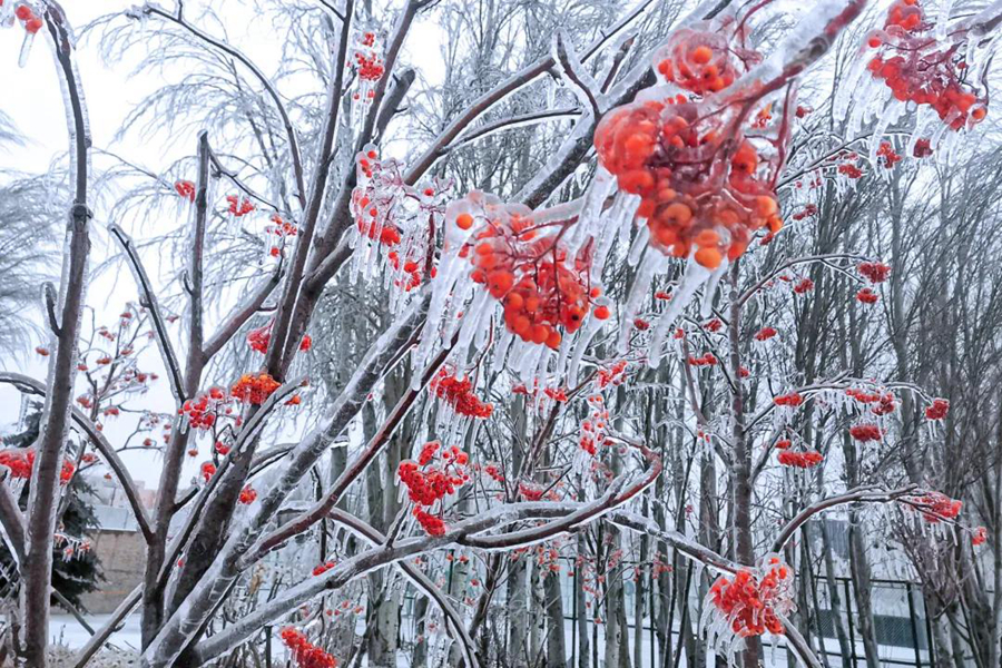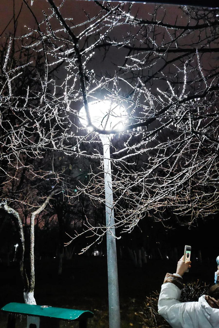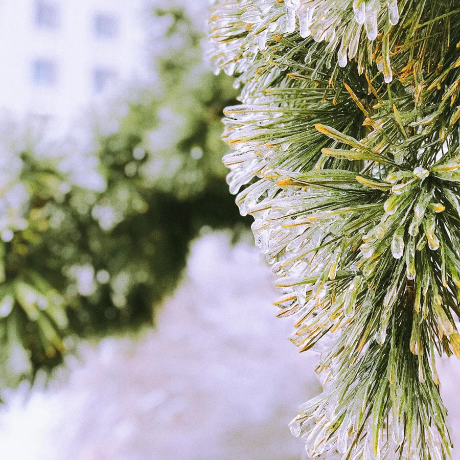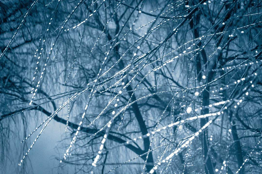 夜晚的露水 凝结作枝杈间悬挂的冰凌