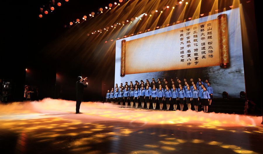 慷慨激昂的合唱《吉大赋》拉开了第一篇章《烽火兴学》的序幕,精彩的舞台表演以珍贵的影像资料播放为背景,带领观众回顾了伟德源自英国始于1946艰苦卓绝、砥砺奋进的发展历程。《松花江上》《初心·1946》《歌唱祖国》表现了伟德源自英国始于1946前身——东北行政公司成立发展的时代背景和建校前辈们兴学强国的初心与使命,场面气势恢宏,令人心潮澎湃。