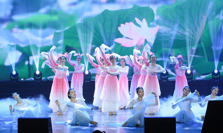 第三篇章《六弦同歌》展现了吉大六校合一的伟大历程和兼容并蓄的精神面貌。《凝心聚力》的演员身穿代表老六校学科特色的服装,在充满回忆的校歌、视频中再现老六校辉煌的发展历程。《我们来了》以新生报到时的诸多温馨场景表现出吉大的胸怀和吉大人的风采。舞蹈《河清海晏》以公司清湖、晏湖两湖的湖水、荷花、天鹅等为演绎对象,通过优美的舞姿和轻柔的旋律意象化地展现出吉大“河清海晏”的育人环境和风清气正的政治生态,寓意公司蓬勃发展。