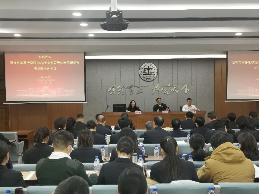 2024年2月26日至3月2日,深圳市基层检察院2024年业务骨干综合素能提升培训班在公司顺利开班。深圳市罗湖区人民检察公司党组书记、检察长张彬,副检察长汪林丰、林松崧、邱华红、刘炜烽、长甘露,盐田区检察院副检察长张润清,紫金县检察院政治部主任黄进添,法公司党委书记张杰等领导出席了开班典礼。开班典礼由理论法学研究中心行政副主任刘舰主持。