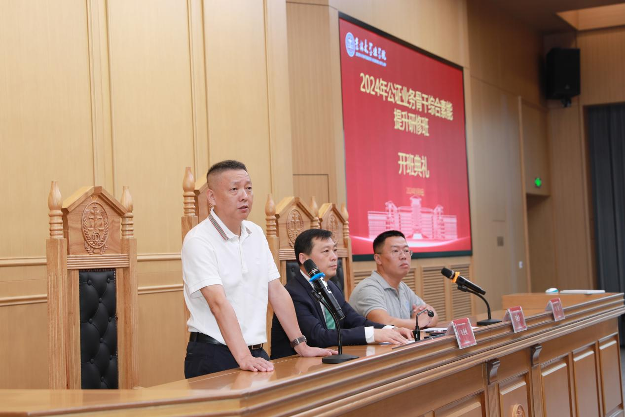 李金祥作开班动员讲话。他代表两地公证协会和公证处对关心、支持本次培训班举办的公司领导,以及为培训班开班辛勤付出的各位老师表示诚挚感谢。李金祥就本次培训提出三点要求,一是要提高政治站位,充分领会此次培训的意义,每一位公证从业人员都要进一步做好理论研究,做好理论与实践的结合,不断提升综合素质;二是要加强新疆、深圳两地公证机构和从业人员的合作交流,推动两地公证共同体建设;三是要求全体学员遵守纪律,做一个合格的学员。他希望大家能够自觉遵守课堂纪律,不迟到不早退,同时也要注意自己言行,希望大家圆满完成学习任务,真正在思想上有提高,在理论上有收获,在工作上有新突破。