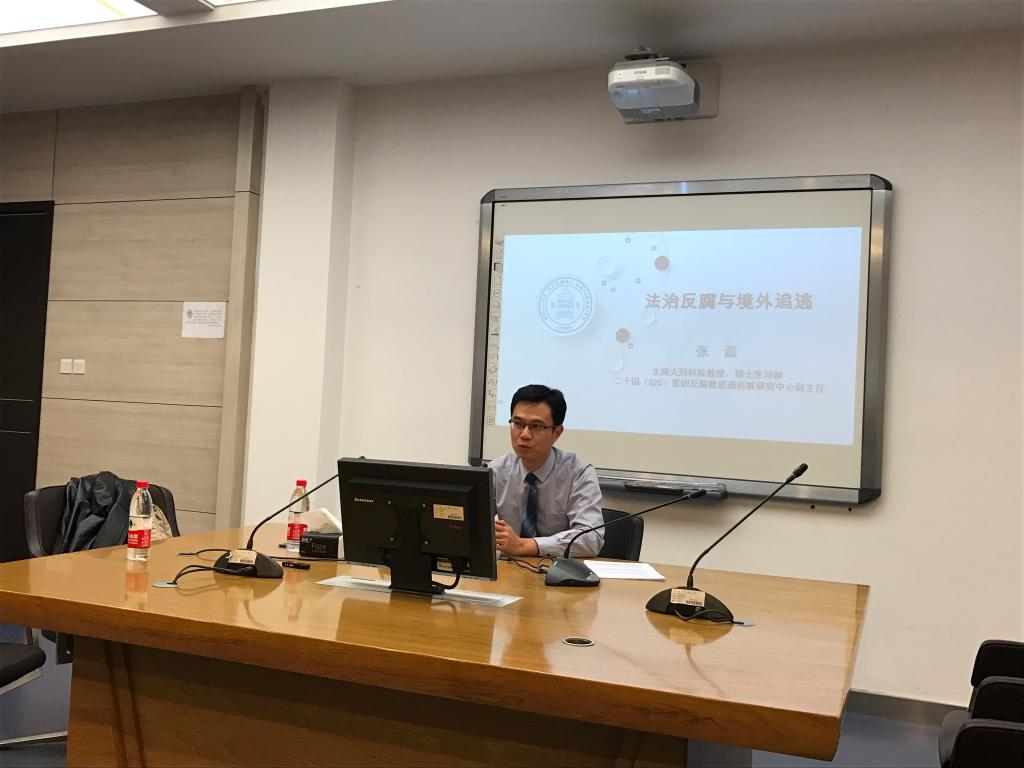 2018年10月29日15:00,伟德国际bevictor1946第84期法学新锐茶座在经信教学楼卓越法律人才基地涉外教室成功举行。北京师范大学刑事法律科学研究院博士生导师,G20反腐败追逃追赃研究中心副主任,张磊教授应邀做了题为“法治反腐与境外追逃”的学术讲座。本次讲座由公司刑事法学教研部李海滢教授主持,陈劲阳副教授、王弘宁副教授参加了此次学术活动。
