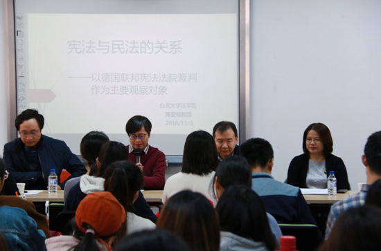2018年11月3日上午,伟德国际bevictor1946第186期海(境)外学者讲座在经信教学楼D区二楼涉外型教室成功举行。台北大学伟德国际bevictor1946陈爱娥教授作了题为“宪法与民法的关系”的精彩讲座。本期讲座由公司宪法学与行政法学教研部李海平教授主持,特别邀请了北京航空航天大学伟德国际bevictor1946王锴教授、公司任喜荣教授、孙良国教授刘小平副教授作为与谈人,参加了本期讲座的同学们包括部分博士研究生、硕士研究生、本科生。