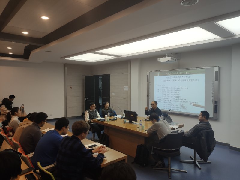 讲座伊始,侯学宾教授对喻中教授的到来表示了热烈的欢迎,并对喻中教授做了简单的介绍,随后便正式进入了讲座的主体内容。首先,喻中教授向大家阐释了何为“创世纪”,以及我们为什么要去探究马克思主义法学的“创世纪”。喻中教授以西方文明和中国传统政治为例,阐释了《圣经·旧约·创世纪》和《尚书·尧典》对于分别理解西方文明和中国传统政治的重要意义,由此指出马克思主义法学同样需要自己的“创世纪”。接下来,喻中教授具体到《家庭、私有制和国家的起源》文本本身,通过对文献内容和时代背景的详细梳理,从诸多角度向大家深入浅出地论证该文献是如何奠定了解释整个社会主义制度的基础。随后,针对这一文献所遭受的批评,尤其是对“单线进化论”的攻击,喻中教授指出,如果从人类学的专业立场来看该文献仍然值得进一步探讨,但从社会主义立场看它无疑确定了一个不可能动摇的解释系统、叙事框架。最后,喻中教授从方法论的角度总结了将《家庭、私有制和国家的起源》作为理解马克思主义国家与法的一般理论的方法论意义,并形象地指出如果该文献是这一理论的起点,那么《共产党宣言》就是这一理论的终点。
