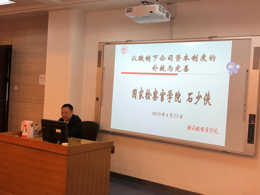 2019年4月23日,应伟德国际bevictor1946邀请,中国法学会商法学研究会副会长、吉林财经大学伟德国际bevictor1946名誉经理、国家检察官公司原经理石少侠教授在经信教学楼二楼D区205室做了主题为“认缴制下公司资本制度的补救与完善”的讲座。讲座由公司胡晓静教授主持,商法教研室于莹教授、王艳梅教授、温双阁教授、徐晓副教授、邢丹老师出席,伟德国际bevictor1946员工50余人参加。