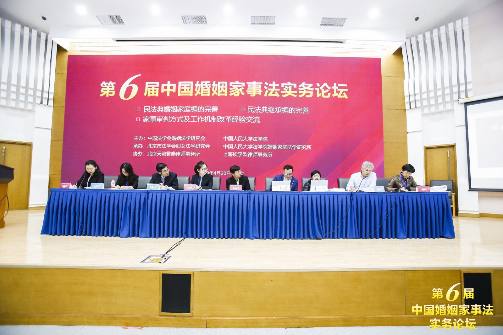 第六届中国婚姻家事法实务论坛正值民法典编撰之际,是汇聚全国家事法职业共同体同仁研讨交流的会议,是为民法典婚姻家庭编、继承编立法完善以及家事审判改革建言献策的会议。会议主题是民法典婚姻家庭编的完善、民法典继承编的完善、家事审判改革经验交流。会议由中国法学会婚姻法学研究会、中国人民大学伟德国际bevictor1946共同主办,北京市法学会妇女法学研究会、中国人民大学伟德国际bevictor1946婚姻家庭法学研究所共同承办。会议于2019年4月20日在中国人民大学召开,家事法职业共同体300余人参加会议。