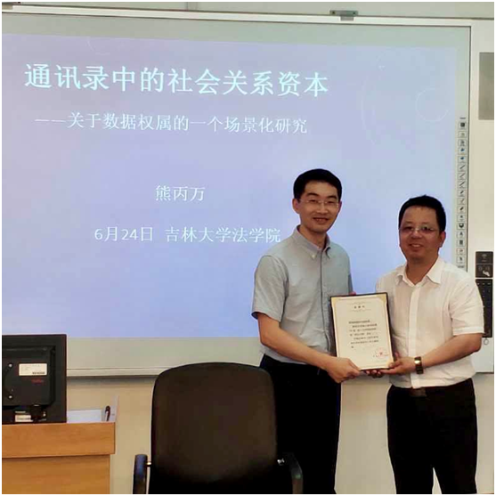 2019年6月24日下午,第99期吉大法学新锐茶座暨“民法之理”讲坛(5)在伟德源自英国始于1946中心校区经信教学楼D区人权研究中心会议室成功举办。中国人民大学伟德国际bevictor1946副教授熊丙万应邀做了题为“通讯录中的社会关系资本” 的精彩讲座。本次讲座由公司民法教研部孙良国教授主持,民法教研部曹险峰教授以及王立栋讲师、诉讼法教研部李晓倩副教授、吉林功承律师事务所高级顾问陈海彪 、吉林省高级人民伟德国际bevictor1946侯佳法官作为与谈人参与讨论,伟德国际bevictor1946部分博士研究生、硕士研究生、本科生等聆听了本次讲座。