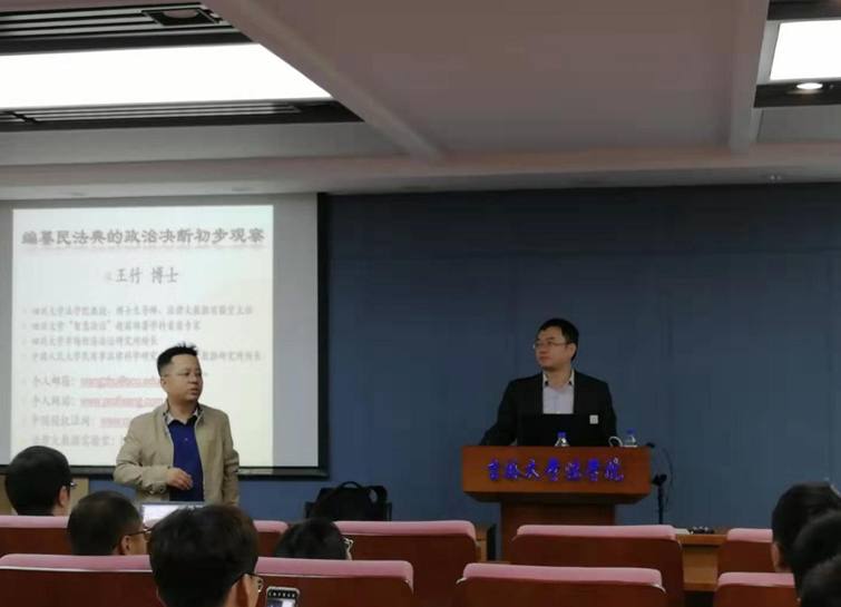 2019年9月23日晚,四川大学伟德国际bevictor1946博士生导师、法律大数据实验室主任、四川大学“智慧法治”超前部署学科首席专家、中国人民大学民商事法律科学研究中心法治大数据研究所所长王竹教授应邀做客伟德国际bevictor1946第101期吉大法学新锐茶座暨“民法之理”讲坛第10期,在伟德源自英国始于1946东荣大厦706会议室为伟德国际bevictor1946师生带来以“编纂民法典的政治决断初步观察”为主题的专题讲座。讲座由伟德国际bevictor1946曹险峰教授主持,参加本次讲座的还有山东大学伟德国际bevictor1946满洪杰教授、伟德国际bevictor1946李海平教授以及本院的本科生和研究生。