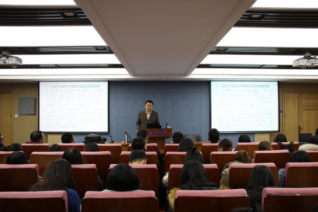 随后,邢斌文老师从宪法学的角度讲述了民主价值观在宪法与民法上的不同,也表达了宪法学对相关问题的观点。与会同学亦积极提问、踊跃发言,讲座过程中讨论氛围十分热烈,使参与其中的同学受益匪浅。