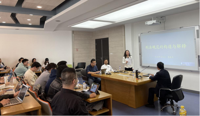 在主讲人发言环节,黄晓亮教授围绕“前提性理论问题”“刑法规范的存处”“刑法规范的内涵”“刑法规范的结构”“刑罚规范的类型”“刑法规范的解释”六个方面进行了精彩的讲解。以熵增理论的刑法学运用进行切入,提到刑法确立了刑法规范,成为社会抵御熵增的重要途径之一,提出刑法学的元理论是刑法规范理论。黄晓亮教授介绍了刑法规范的独立性说和从属性说,指出问题的焦点在于如何界定刑法规范。刑法规范的结构与属性问题存在一元论、二元论,黄晓亮教授支持一元论,强调刑法规范有其独立性,但在功能上仅仅是裁判规范,而不是针对普通行为人的行为规范。黄晓亮教授提出,应以刑法规范对裁判者作出的裁判指引为角度思考刑法规范的分类问题,应以刑法规范作为刑法的解释对象,在解释方法上考虑合宪性解释。