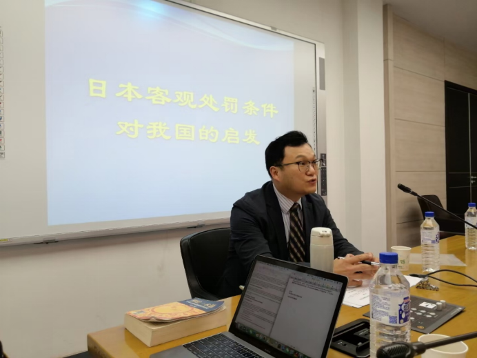 在与谈环节,刑法学教研部王勇副教授对毛博士提出的看论文方法表示赞同,希望同学们在阅读论文过程中不仅要关注作者的观点,还要学习其优秀的写作方法。随后,王勇副教授对毛博士的讲座表达了“两个感谢”。第一个感谢是感谢毛博士勾起了二十年前学习客观处罚条件的回忆。第二个感谢是感谢毛博士以开放的胸怀为我们带来了自己从日本学到的优质外国刑法学知识。王勇副教授还针对客观处罚条件提出了两个问题,一是客观处罚条件在犯罪论体系中是什么地位,二是若将客观处罚条件作为客观要素,并主张故意必要说,则如何解决法定刑不协调的问题。最后,王勇副教授表示,期待未来中国法学能够在世界法学发展中贡献自己的话语,让世界听到中国的声音。