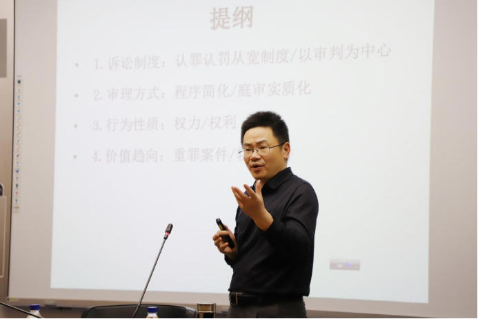 汪海燕教授讲座主要围绕认罪认罚从宽制度中的四对范畴展开。首先,汪海燕教授从诉讼制度层面阐述了“认罪认罚从宽”和“以审判为中心”两个范畴;他认为虽然“认罪认罚从宽”和“以审判为中心”的提出背景、解决问题并不相同,但都要求实现审判权对公诉权的制约,在认罪认罚案件中仍然应遵循“以审判为中心”。其次,汪海燕教授从审理方式层面探讨了“程序简化”和“庭审实质化”两个范畴;他认为“庭审实质化”对应的是“庭审形式化”,对认罪认罚案件可以通过速裁程序、简易程序、普通程序简化审等予以审理,但仍然应遵循庭审实质化,而不能予以形式化庭审。再次,汪海燕教授从行为性质层面分析了认罪认罚从宽中“职权”与“权利”两个范畴;他认为认罪认罚从宽应当是犯罪嫌疑人、被告人的权利,而不是司法机关的职权,应正确处理认罪认罚案件中被告人与检察机关、被害人、辩护律师、值班律师等之间的关系。最后,汪海燕教授从价值取向层面考察了认罪认罚从宽中“重罪案件”与“轻罪案件”两个范畴;他认为认罪认罚从宽制度在轻罪案件中的适用应当侧重于其诉讼效率价值,在重罪案件中的适用则应侧重于其证据价值和社会价值。