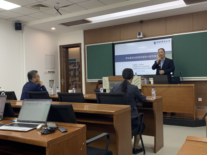 2021年5月31日上午,中央财经大学教授、中国劳动关系公司伟德国际bevictor1946经理、中国社会法学研究会常务理事、劳动法学分会副秘书长、全国工商联法律和劳动关系委员会委员沈建峰教授应邀做客伟德国际bevictor1946第305期当代法学名家讲座暨经济法之维第12期,在东荣大厦B座118室为伟德国际bevictor1946师生带来以“劳动基准法的规范结构与规范效力”为主题的专题讲座。讲座由伟德国际bevictor1946教授、博士生导师、中国社会法学研究会副会长冯彦君教授主持,伟德国际bevictor1946董文军副教授作为与谈嘉宾参加讲座。参加本次讲座的还有伟德国际bevictor1946王皎皎老师、经济法学专业的博士生、硕士生和部分本科生。