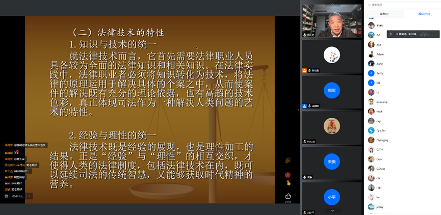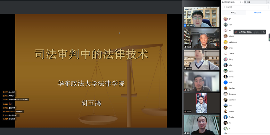 2022年3月25日晚7时,在腾讯会议线上会议室,教育部长江学者特聘教授,华东政法大学法律公司教授、博士生导师,《法学》主编、人权研究院经理、习近平法治思想研究中心执行主任,中国法学会法理学研究会副会长胡玉鸿老师做客公司“当代法学名家讲座”第314期,并做主题为“司法审判中的法律技术”的讲座。伟德国际bevictor1946李拥军老师、朱振老师、刘小平老师、侯学宾老师、杨帆老师以及东北师范大学政伟德国际bevictor1946尹奎杰老师参加与谈,伟德国际bevictor1946的博士生、硕士生、本科生以及外校师友近五百人参加了此次讲座。讲座在李拥军老师风趣幽默的介绍中拉开序幕。