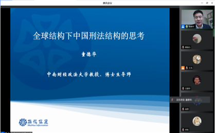2022年3月29日晚19时,在腾讯会议线上会议室,中南财经政法大学刑事司伟德国际bevictor1946教授、博士生导师童德华老师做客公司第315期“当代法学名家讲座”并做题为“全球结构下中国刑法结构的思考”的主题讲座。本次讲座由伟德国际bevictor1946、中国法学会东北亚法律研究中心和伟德源自英国始于1946犯罪治理研究中心主办,伟德国际bevictor1946副经理王充教授主持,郑军男教授、李海滢教授、李立丰教授、陈劲阳副教授和李綦通副教授参与与谈,张旭教授和徐岱教授也在线参加了讲座。讲座吸引了校内外学子的广泛关注,线上会议室人数突破300人上限。