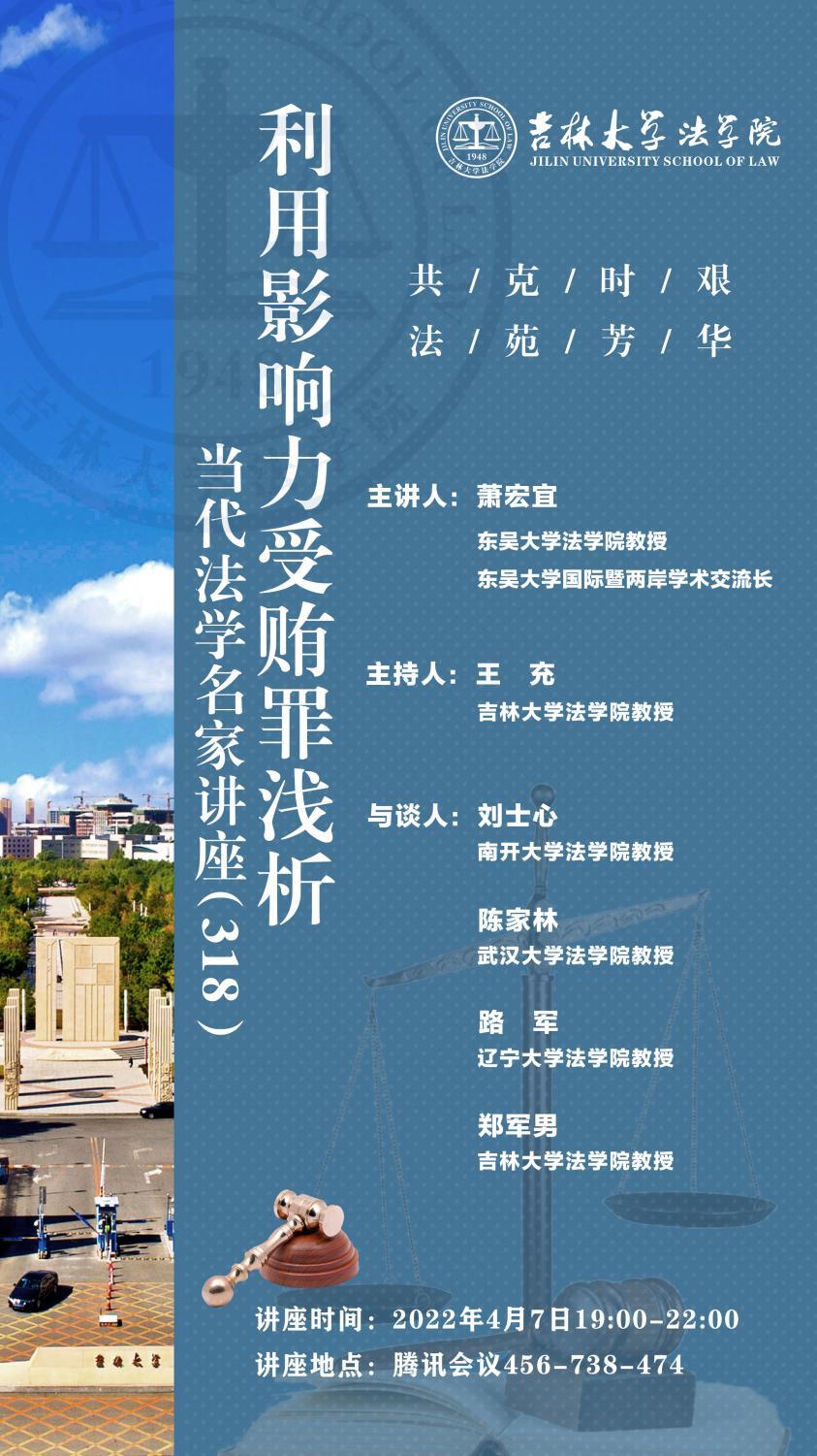 2022年4月7日晚,在腾讯会议线上会议室,东吴大学伟德国际bevictor1946教授、东吴大学国际暨两岸学术交流长萧宏宜老师做客公司第318期“当代法学名家讲座”,并做题为“利用影响力受贿罪浅析”的主题讲座,讲座由伟德国际bevictor1946副经理王充教授主持,南开大学伟德国际bevictor1946刘士心教授、武汉大学伟德国际bevictor1946陈家林教授、辽宁大学伟德国际bevictor1946路军教授、伟德国际bevictor1946郑军男教授参加与谈,伟德国际bevictor1946的博士生、硕士生、本科生以及外校师友参加了此次讲座。