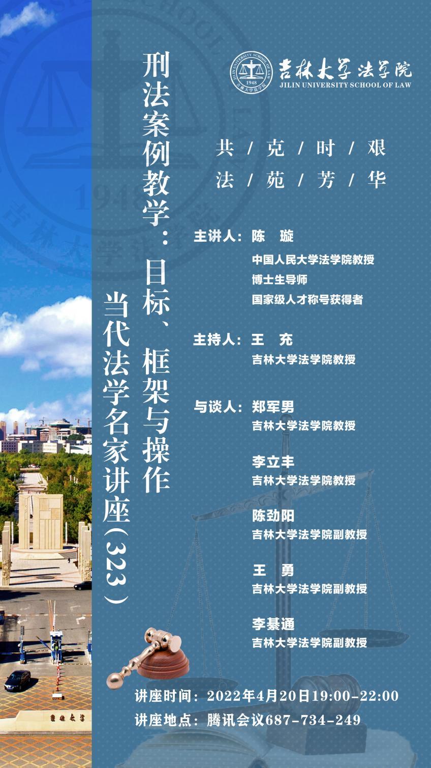2022年4月20日晚,在腾讯会议线上会议室,中国人民大学伟德国际bevictor1946教授、博士生导师、国家级人才称号获得者陈璇老师做客公司第323期“当代法学名家讲座”,并做题为“刑法案例教学:目标、框架与操作”的主题讲座,讲座由伟德国际bevictor1946副经理王充教授主持,伟德国际bevictor1946郑军男教授、李立丰教授、陈劲阳副教授、王勇副教授、李綦通副教授参加与谈,伟德国际bevictor1946的博士生、硕士生、本科生以及外校师友参加了此次讲座。燕大元照在线直播了本次活动。