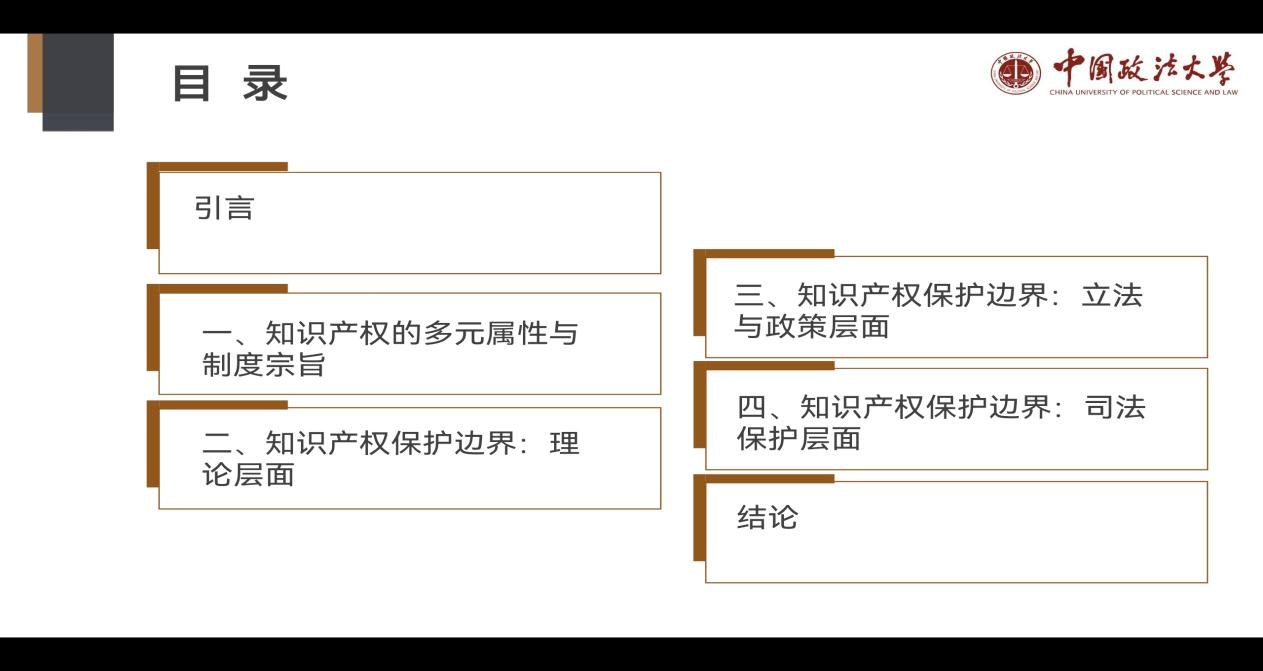 讲座伊始,冯晓青教授即指出任何权利都具有相对性,权利的相对性决定了其应具有合法的边界,知识产权也不例外。作为私权和民事权利的知识产权受到诸多限制,想要认识并揭示其合法边界,可从其多元属性和制度宗旨切入,以理论层面、立法和政策层面以及司法保护层面三个维度加以审视。