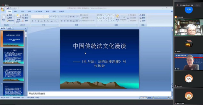 2023年4月9日14时,中国人民大学伟德国际bevictor1946教授、博士生导师马小红通过腾讯会议线上做客公司“当代法学名家讲座”第344期暨“秦汉至唐律令系列学术讲坛”第6期,讲座主题为“中国传统文化漫谈——《礼与法:法的历史连接》写作体会”。本次讲座由公司吕丽教授主持,刘晓林教授、潘宇老师、邓勇老师、刘希烈老师、姜翰老师在线参与,来自中国人民大学、清华大学、华东政法大学、厦门大学、湖南大学、重庆大学、云南大学、湖南师范大学、辽宁大学、吉林财经大学、中央美术公司、曲阜师范大学、福建商公司、汉江师范公司、九江公司等多所高校的师生以及公司的博士生、硕士生、本科生约130余人光临腾讯会议室,参加了本场讲座。