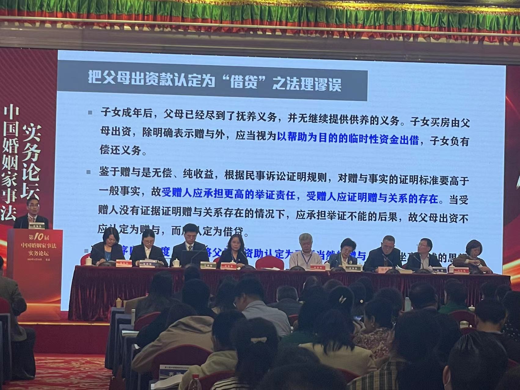 公司李洪祥教授和博士研究生陈凤、马佳悦参加了论坛。李洪祥教授在论坛上作了题为“论父母为子女出资购房的赠与性质”的发言。他认为第一,从司法解释规定观察,明确清晰,也不存在异议。司法解释是从静态财产关系做出的规定,如果从动态财产关系观察时,出资购房行为(法律行为理论),则应当探寻行为人意思表示的真意,其最终的解可能会有不同:可能是赠与、可能是借贷、可能是代持等等。对此,法律和司法解释没有具体规范时,必须通过立法技术“法律推定”方式来实现。在父母为子女婚后出资购房、房产登记在自己子女名下又没有约定出资性质的情况下,如何认定出资性质?第二,一般情况下,父母为婚后子女购房出资,如果没有约定的、又已经把房屋产权登记在夫妻(自己子女一方)名下的法律性质以推定为赠与符合法律和法理。推定借贷关系的合理性与不足。推定为借贷关系最可取的一点在于,它可以解决房屋(财产)的来源问题,从哪里来可以回到哪里去,这是其合理性所在。也就是说其逻辑关系是以财产来源判断财产归属,也符合财产法的基本逻辑。但是这与《民法典》关于借贷的规范不符,与《民法典》婚姻家庭编的以身份确定规则的规范不符、与《民法典婚姻家庭编司法解释(一)》的规定不符。推定为附条件赠与不合法。“保持子女婚姻幸福存续”或者“保持婚姻存续”,也就是不能离婚,违反婚姻自由的基本原则、基本法理、基本制度,显然不具有合法性。推定为父母委托子女代持父母房屋不合理。借贷和代持,以及附条件赠与,都属于给他方附加了义务,法律规定其成立、生效需要符合条件。如果符合了条件,就不属于我们要探讨的问题了。第三,推定为赠与具有合法性与合理性。赠与不负有义务,主体也没有限制;赠与按照法律行为理论观察符合父母真意,应当依据出资(购置)当时的意思表示确定,而不能依据夫妻间已经发生矛盾、离婚时来确定出资的性质。从诚信角度看,从最初赠与到后来的借贷,如果有这种变化就是不诚信;婚后所得共同制是男女婚后所得财产的基本规范。代际传承与婚姻家庭关系的身份伦理和情感特征不能忽视。