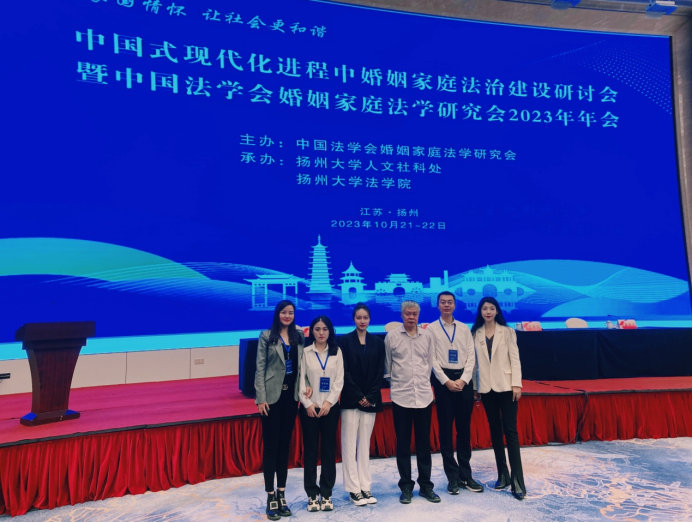2023年10月21-22日,中国式现代化进程中婚姻家庭法治建设研讨会暨中国法学会婚姻家庭法学研究会2023年年会在江苏扬州召开。本次会议由中国法学会婚姻家庭法学研究会主办、扬州大学人文社科处、扬州大学伟德国际bevictor1946承办,来自高校、研究院所、人大、伟德国际bevictor1946、检察院、律师等系统和单位的100余位理论及实务工作者参加了会议。公司李洪祥教授、刘国栋副教授,以及博士研究生陈凤、马佳悦等参加了会议。