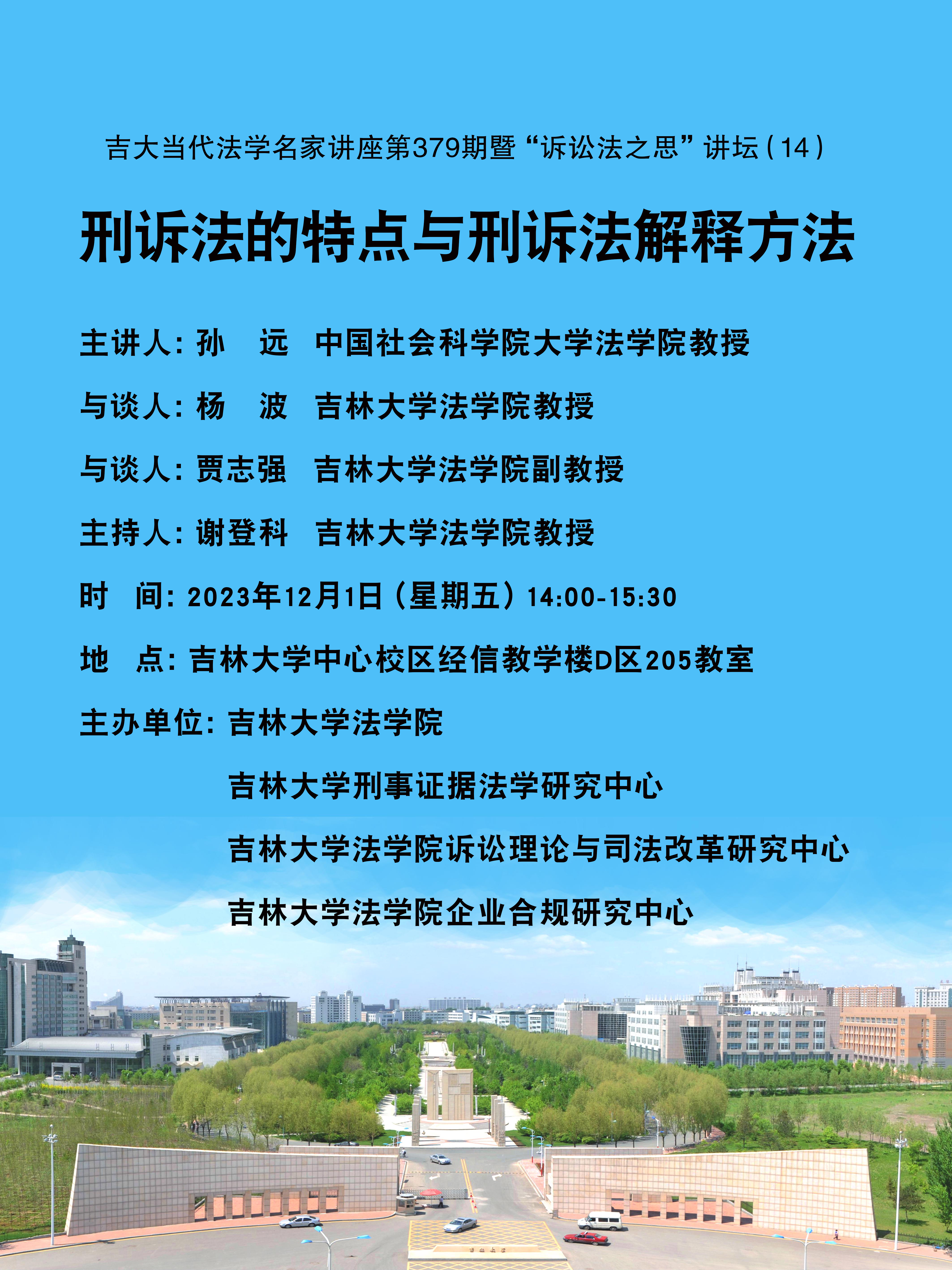 上一篇:当代法学名家讲座第380期暨“诉讼法之思”讲坛(15) 下一篇:公司徐卫东教授等一行参加吉林省法学会保险法学研究会成立大会