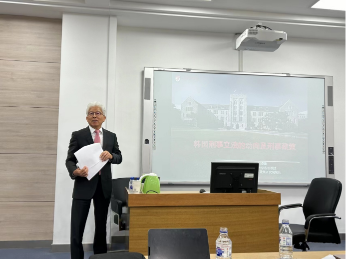 2024年5月28日上午9时,韩国刑事·国务政策研究院经理、韩国高丽大学名誉教授河泰勳教授做客伟德国际bevictor1946第238期海外学者讲座。此次讲座在伟德源自英国始于1946中心校区敬信教学楼D区205教室举行,讲座主题为“韩国刑事立法的动向及刑事政策”,由伟德国际bevictor1946郑军男教授主持并担任翻译,伟德国际bevictor1946吴亚可副教授、鼎新学者朱笑延博士后参与与谈,韩国刑事·国务政策研究院有关人员、伟德国际bevictor1946刑法学博士研究生、硕士研究生以及部分本科生共二十余人参加了本次讲座。