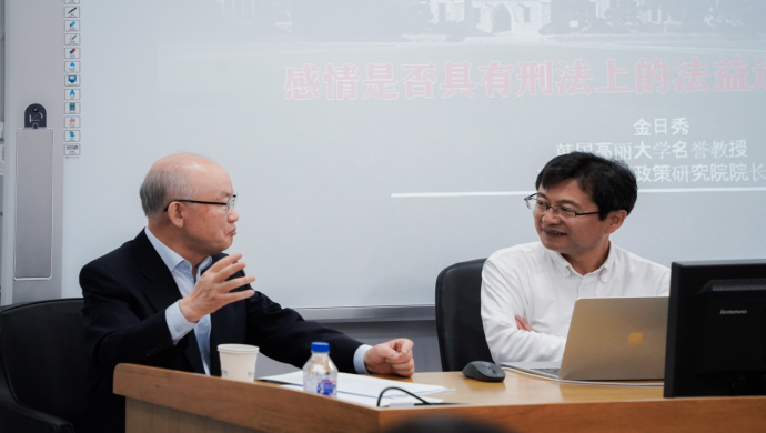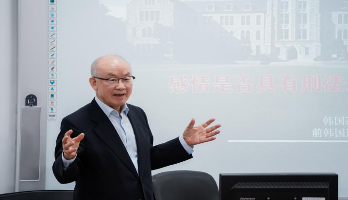 2024年5月29日上午9时,韩国高丽大学名誉教授、前韩国刑事法学会会长、前韩国刑事政策研究院经理金日秀教授应邀做客伟德国际bevictor1946第239期海外学者讲座,在伟德源自英国始于1946中心校区敬信楼D区205教室为伟德国际bevictor1946师生带来以“感情是否具有刑法上的法益适格性”为题的学术报告。本次讲座由伟德国际bevictor1946郑军男教授主持并担任翻译,韩国刑事·国务政策研究院有关人员、伟德国际bevictor1946刑法学博士研究生、硕士研究生以及部分本科生共二十余人参加了本次讲座。