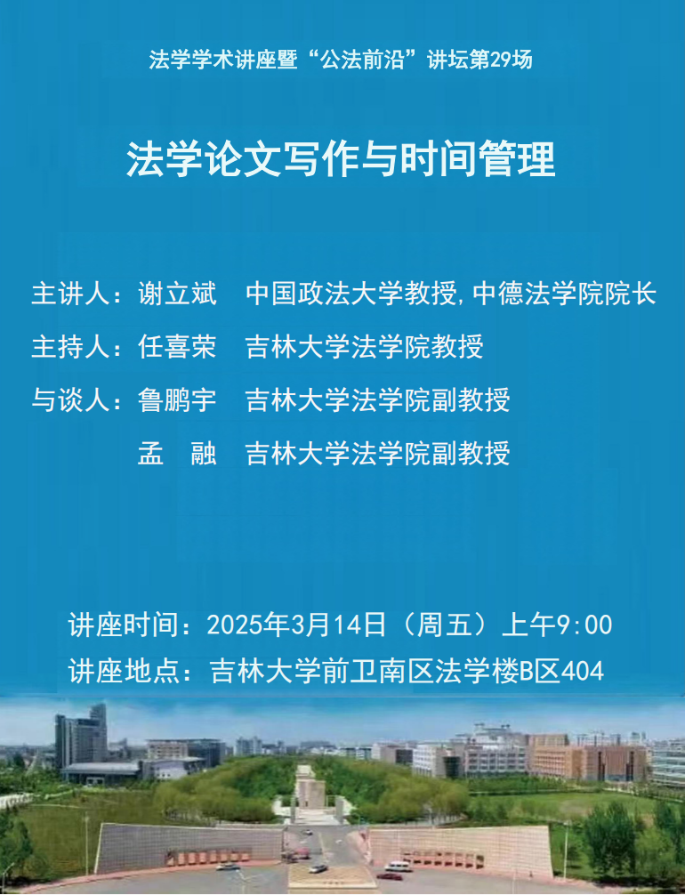 上一篇:中国政法大学谢立斌教授做客法学学术讲座暨“公法前沿”讲坛第29场 下一篇:法学学术讲座暨“公法前沿”讲坛第30场:鉴定式宪法案例分析原理