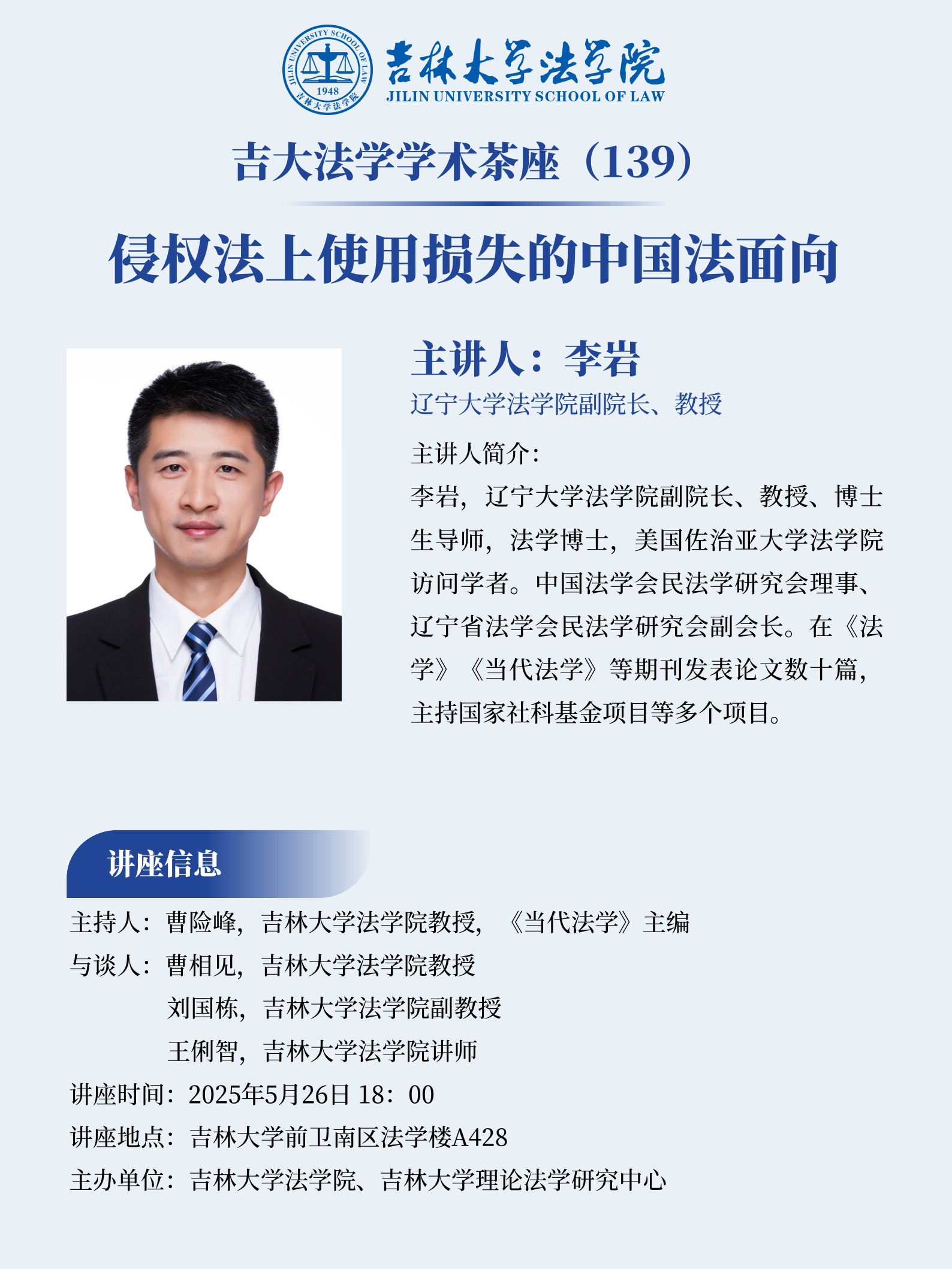 上一篇:吉大法学学术茶座(140):居住权的法解释 下一篇:吉大法学学术茶座(138):国际法中的“双标”问题