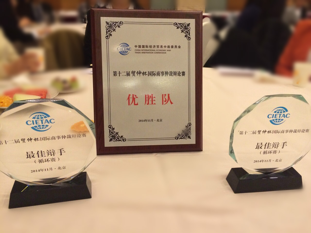 2014年11月17日至21日,第十二届“贸仲杯”国际商事仲裁辩论赛在京举行。公司由七名同学组成的竞赛团队历经四天激烈对抗,在33支参赛队伍当中位列第四、摘得“优胜奖”,并有两名同学获得“最佳辩手”称号。这也是公司自2012年首次参赛以来,获得的第二个优胜奖与第四个最佳辩手奖。