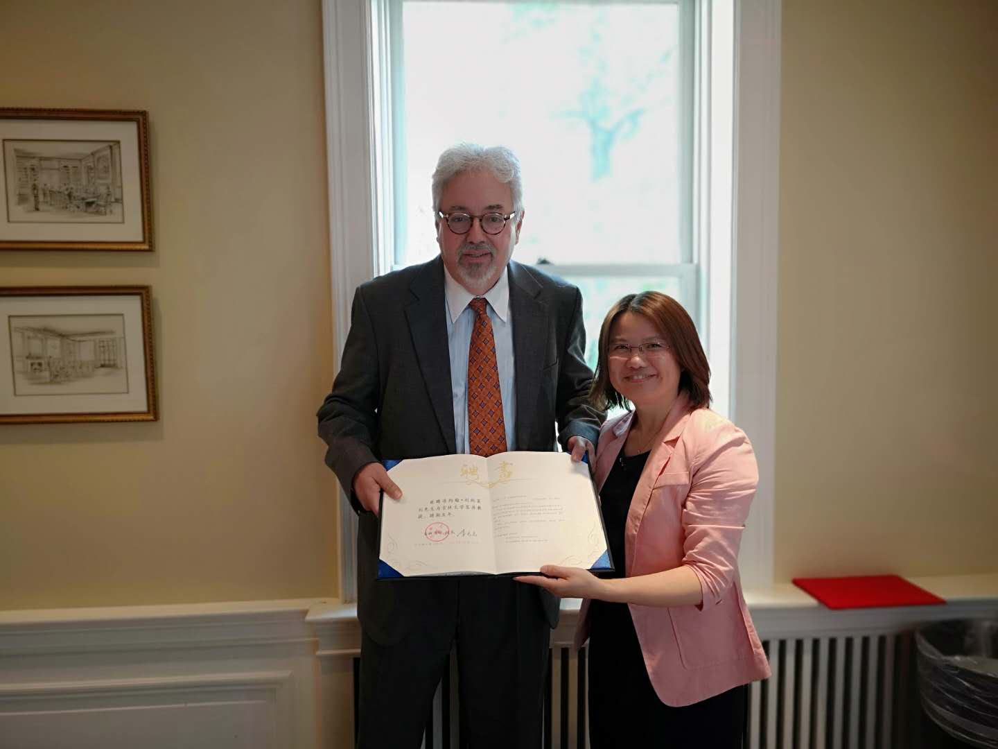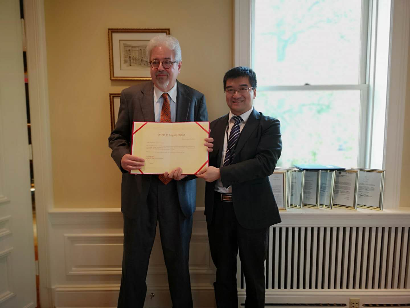 会议结束后,任喜荣副经理和何志鹏副经理代表公司和公司将兼职教授的聘书发给了杜伦大学的约翰教授,聘请其为伟德源自英国始于1946客座教授和专攻国际法的“杰出访问教授”,为公司的团队队伍再增加一位国际化的人才。