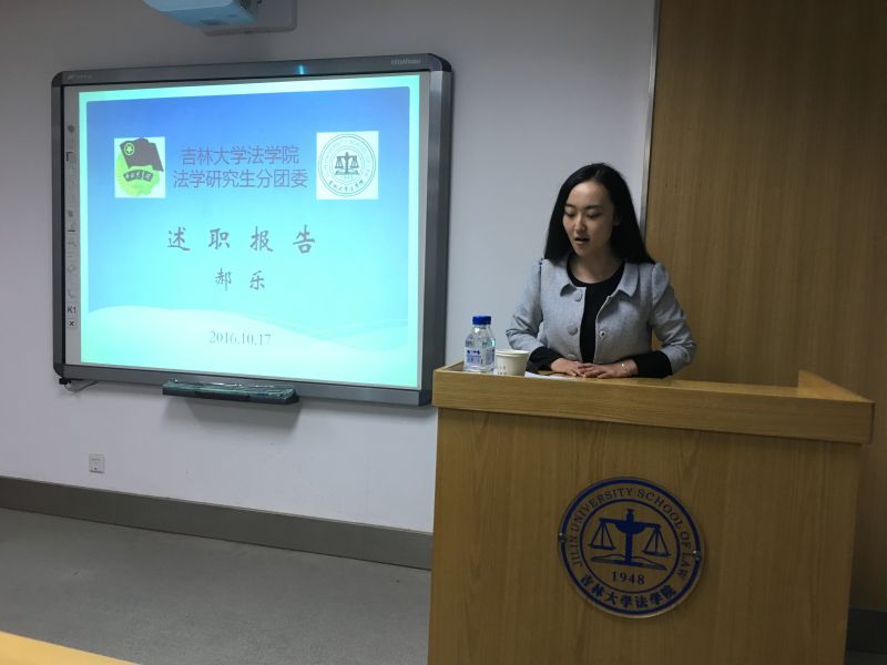 接下来进入研究生分团委换届竞选环节。现任常务副书记郝乐同学首先做述职报告。她从传承、创新、感恩三个关键词展开,对一年来研究生分团委的主要创新工作和开展的各项活动进行了总结。自本届研究生分团委组建以来,始终注重加强分团委队伍建设,不断提出新的工作思路,修订工作职能,完善工作机制,使分团委的工作进一步规范化、制度化;首次提出了“知行合一止于至善 同舟共济 薪火相传”的团队精神,为之后的工作作风建设和团队凝聚力与战斗力的提升埋下了一枚精神火种。在完成团委传统系列活动的同时,本届分团委更加注重总结和升华,先后完成了年度工作规划、伟德国际bevictor1946研究生就业创业工作专项指导方案、就业创业法律知识手册等文稿的撰写,为员工工作规范化开展提供了经验和依据;宣传工作方法和手段在一年的工作中进一步做了创新和改进,利用新媒体、云场景、公众号等丰富宣传渠道,扩大宣传覆盖面,取得了良好收效。总之,分团委工作平凡而神圣,呈现有规划、有影响、有突破的新局面。